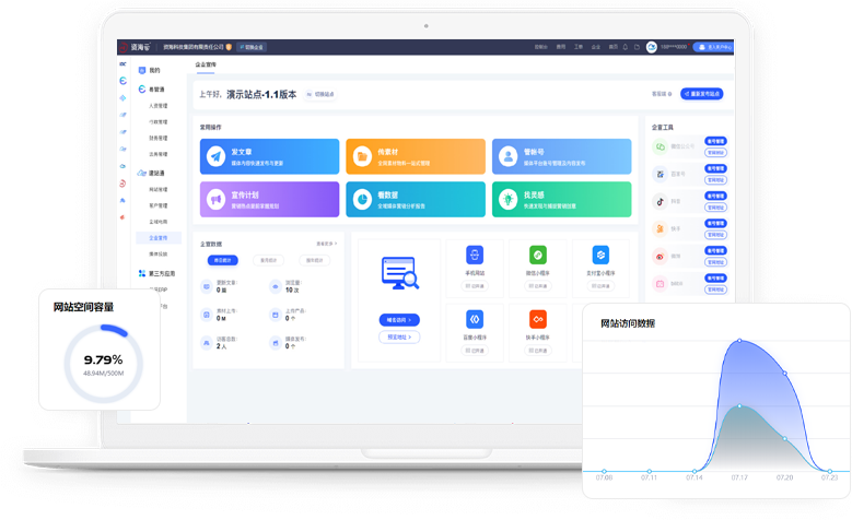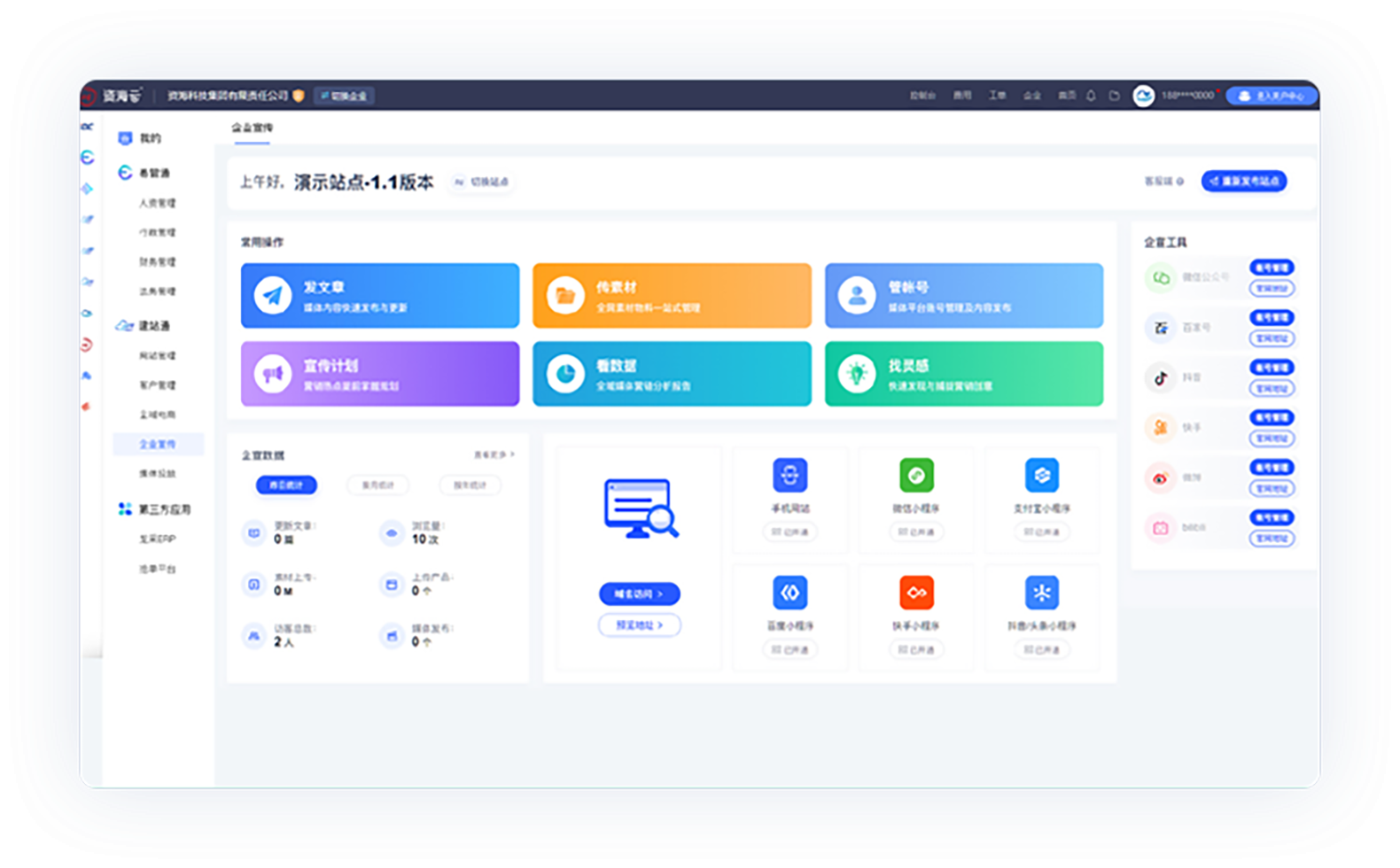 全域营销是一款集多平台搭建、内容统一发布、数据分析、智能编辑与营销优化于一体的综合解决方案。