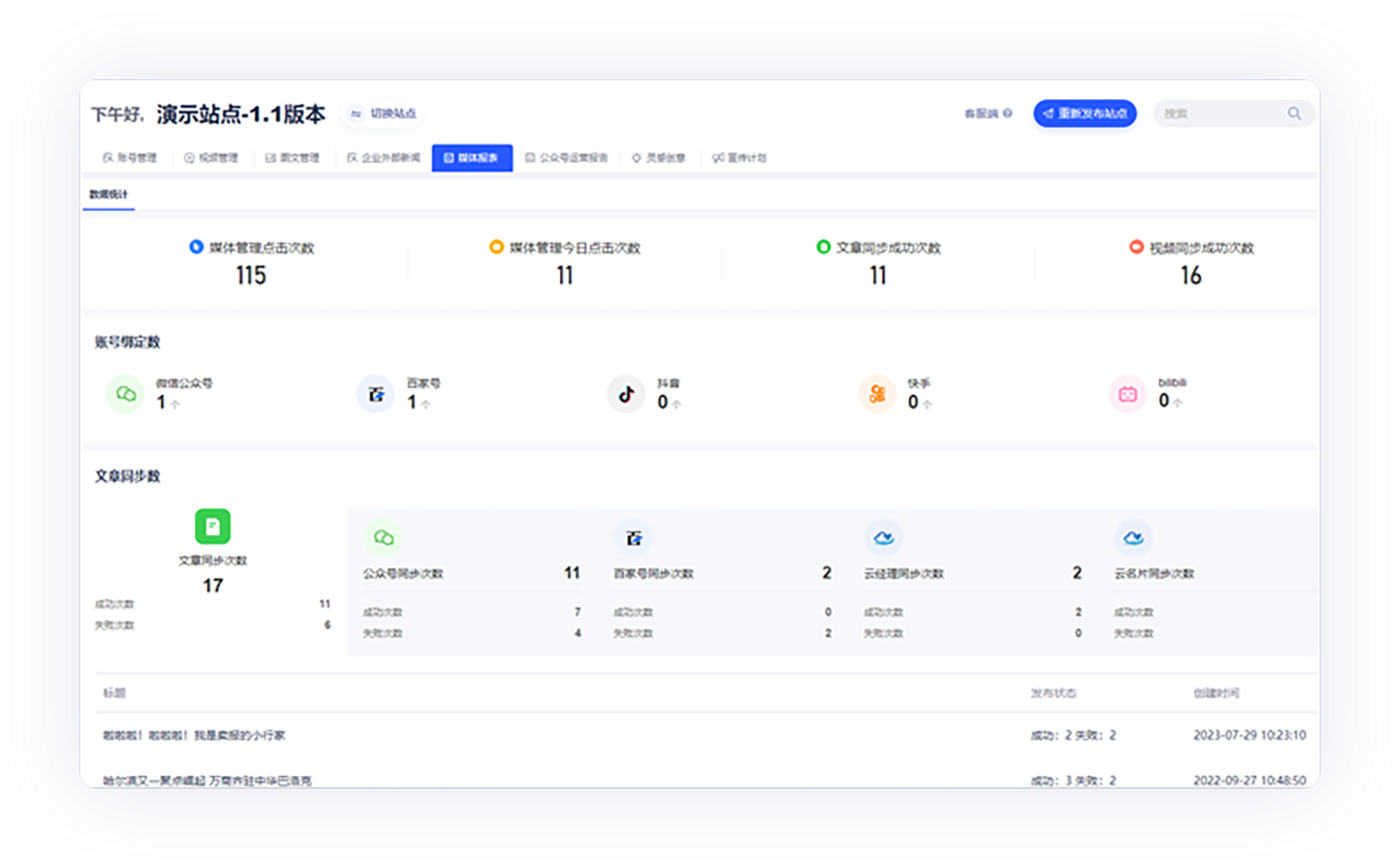 通过全域营销平台,企业可以轻松在3端8站12个主流媒体平台上快速完成内容构建,并实现内容的一个后台统一发布,极大优化了工作流程,降低了时间成本,
